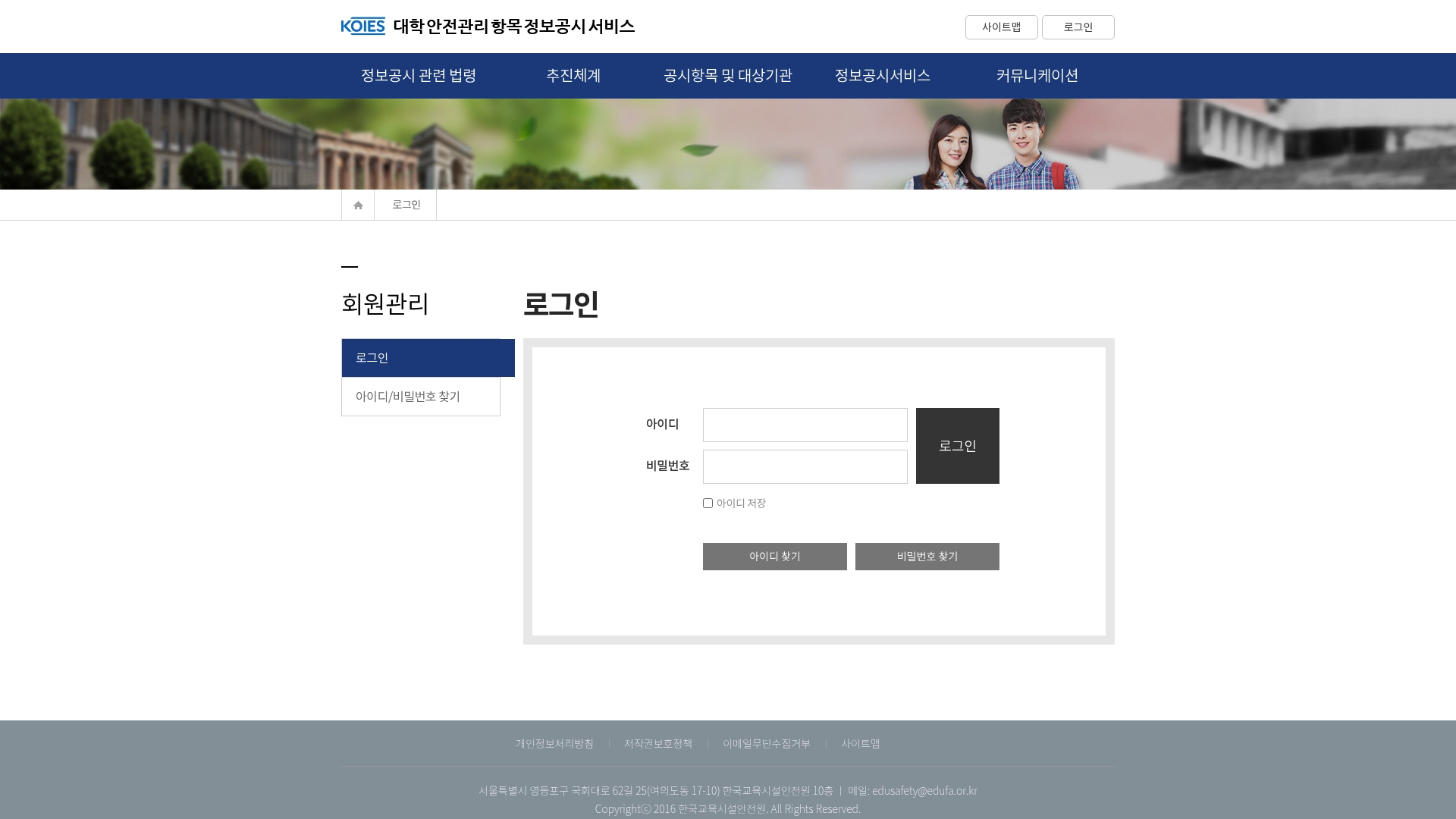 대학 안전관리 항목 정보고시 서비스 법령 및