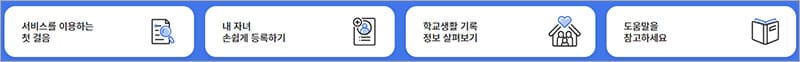 - 학교생활기록 : 생활기록부, 시간표, 출결정보, 봉사활동내역, 학교스포츠클럽, 주간학습