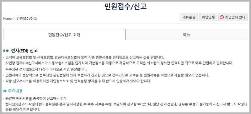 근로자 고용보험 피보험자격 신고 | 간이대지급금(기존소액체당금) 처리현황(청구인) | (노무제공사업·노무제공자) 고용보험료 지원금 계좌 변경 신청 | ||