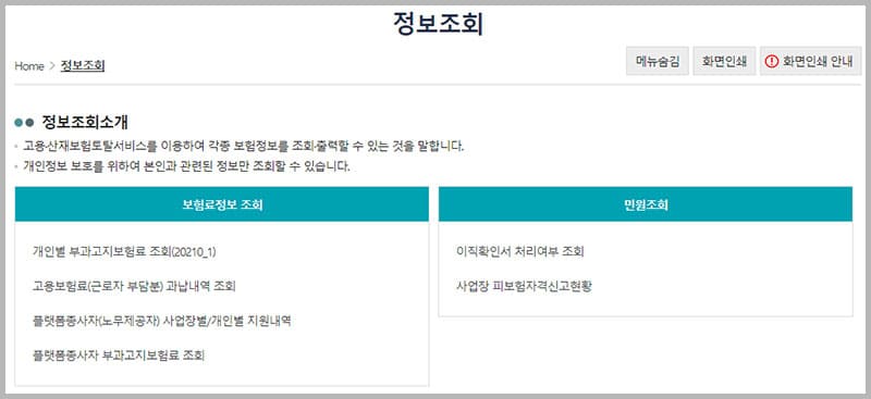 정보조회 서비스는 근로복지공단에서 제공하는 다양한 정보를 사용자들이 쉽게 조회 및 출력할 수 있도록 돕는 기능입니다. 사용자는 자신의 근로복지 관련 정보, 보험 가입 내역, 급여 지급 내역 등을 확인할 수 있으며, 필요한 정보를 신속하게 찾을 수 있습니다. 이 서비스는 근로자가 자신의 권리와 의무를 명확히 이해하는 데 큰 도움이 됩니다.