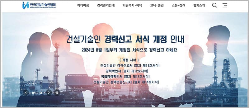 건설기술인협회 홈페이지에 접속하려면 위의 대표 이미지 또는 아래 바로가기 링크를 클릭하면 됩니다. 홈페이지에서는 협회의 다양한 서비스와 정보가 잘 정리되어 있어, 회원들은 필요한 내용을 쉽게 찾을 수 있습니다.